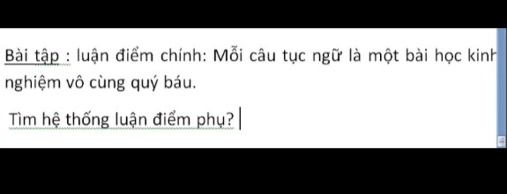 Luận điểm phụ là: Mỗi một câu tục ngữ là một bài học vô cùng quý báu.
