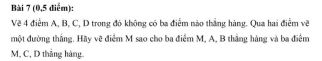 Vē 4 điểm A, B, C, D trong đó không có ba điểm nào thẳng hàng. Qua hai điểm vẽ