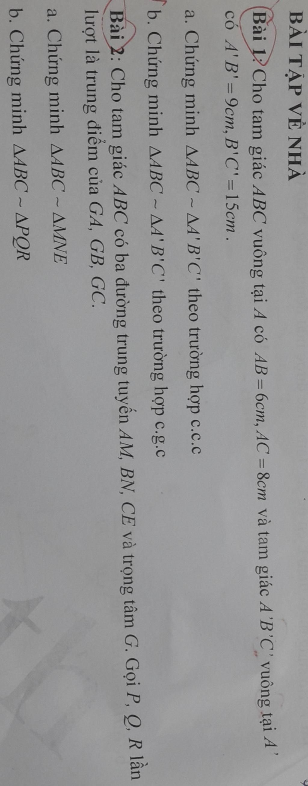 Bài 12 Cho tam giác ABC vuông tại A có AB= 6cm, AC = 8cm và tam giác A’B'C' vuông tại A