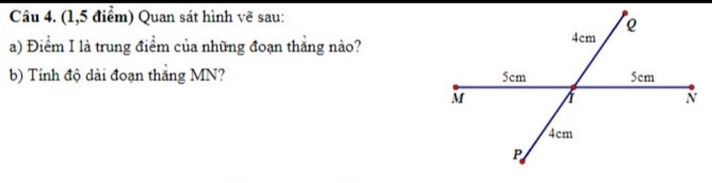 `a)` điểm I là trung điểm của đoạn thẳng: