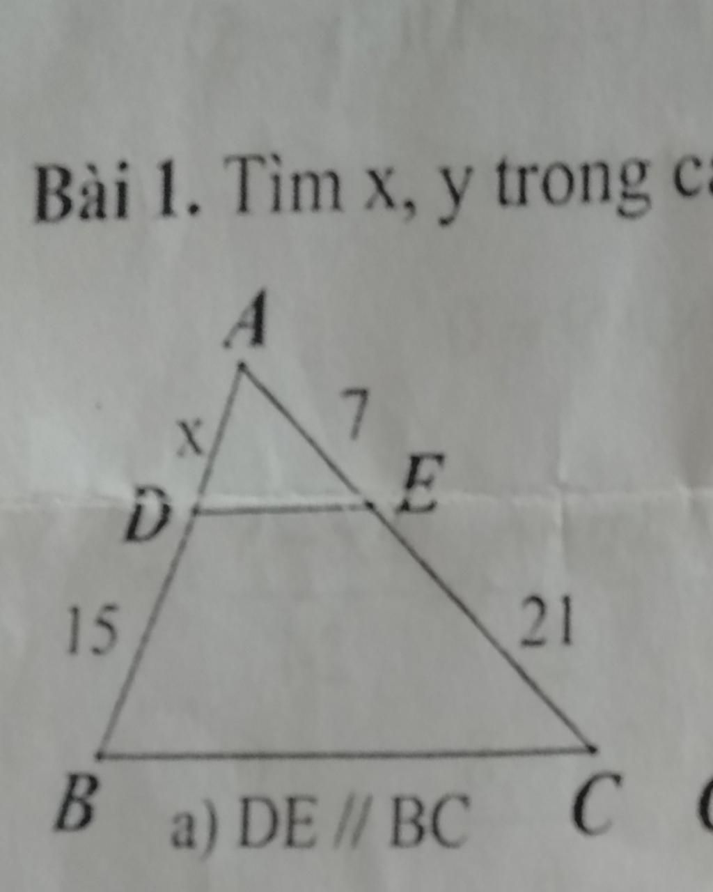 - Vì $DE//BC$ nên áp dụng định lí Ta - lét , ta có :