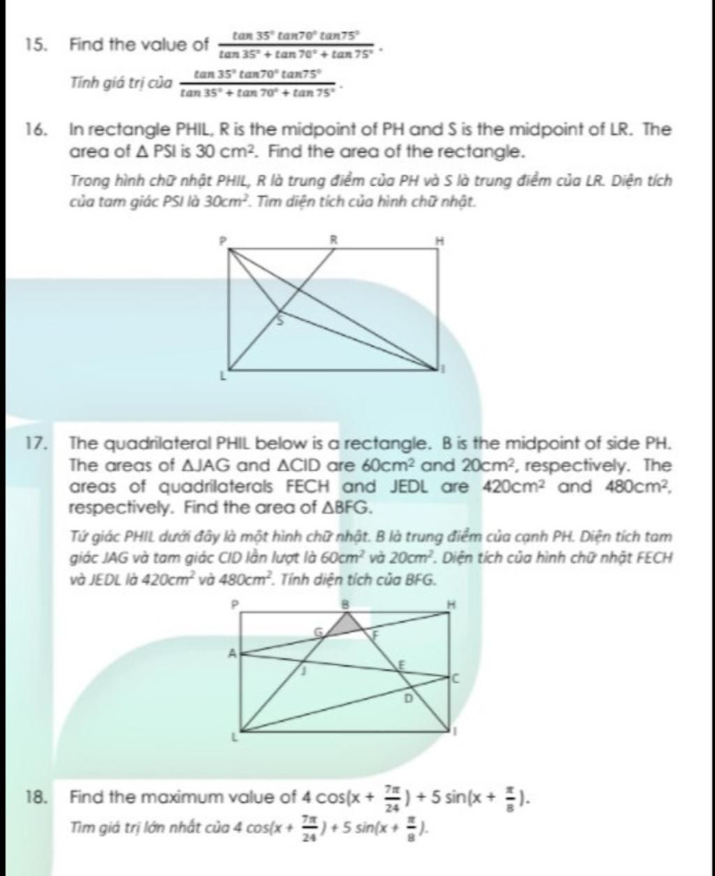 16. In rectangle PHIL, R is the midpoint of PH and S is the midpoint of LR. The