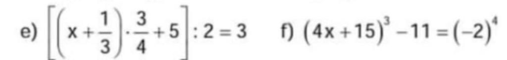 `[(x+1/3)3/4+5] : 2` `=` `3`
