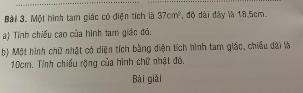 a) Chiều cao của hình tam giác đó là:
