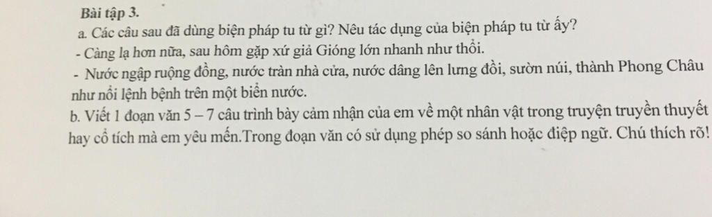Tác dụng: làm câu văn sinh động, nhấn mạnh sức mạnh, sự kì vĩ của nhân vật, niềm tin của nhân dân vào người anh hùng dân tộc mang theo sức mạnh bảo vệ đất nước