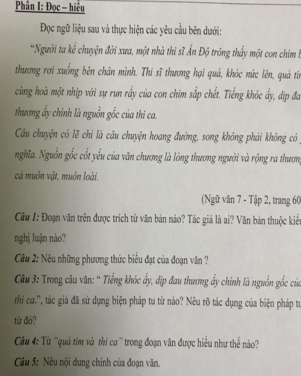Câu 1 : Đoạn trên được trích từ văn bản : Ý nghĩa văn chương