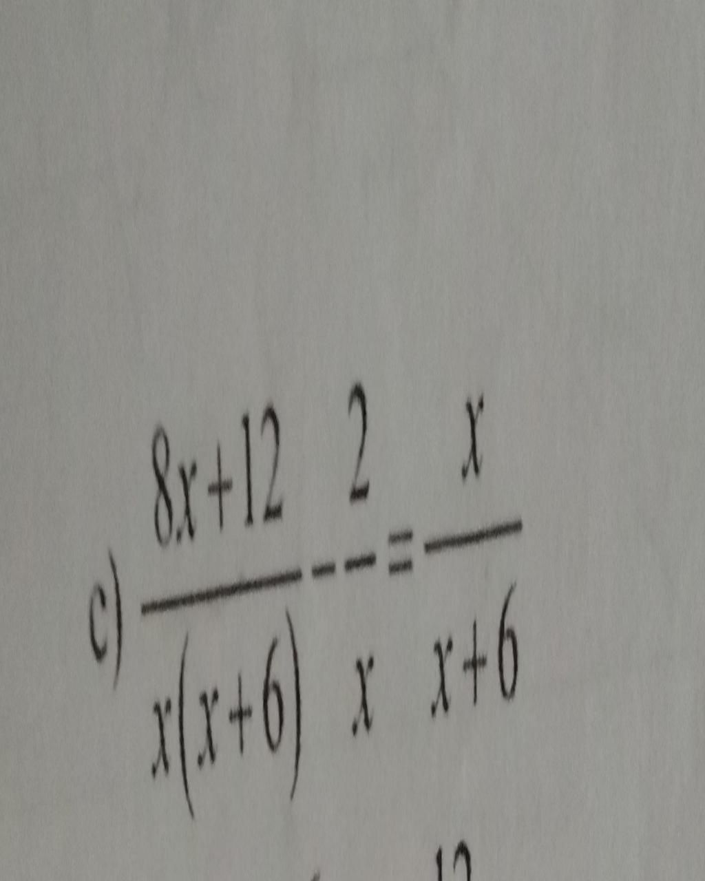 `c) (8x + 12)/(x(x+6)) - 2/x = x/(x + 6) (x \ne 0 ;-6)`