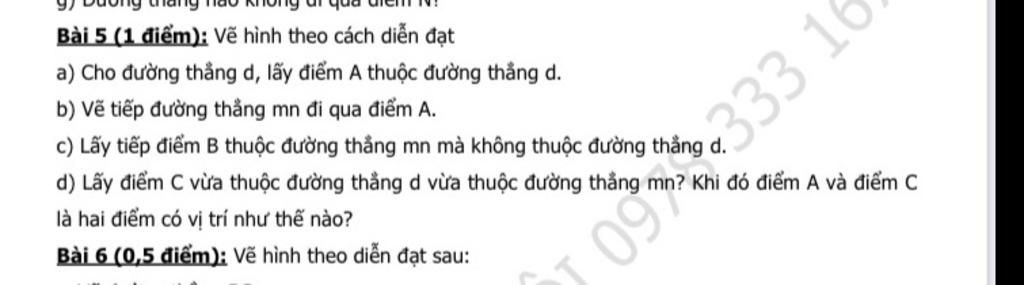 Bài 5 (1 điểm): Vẽ hình theo cách diễn đạt
