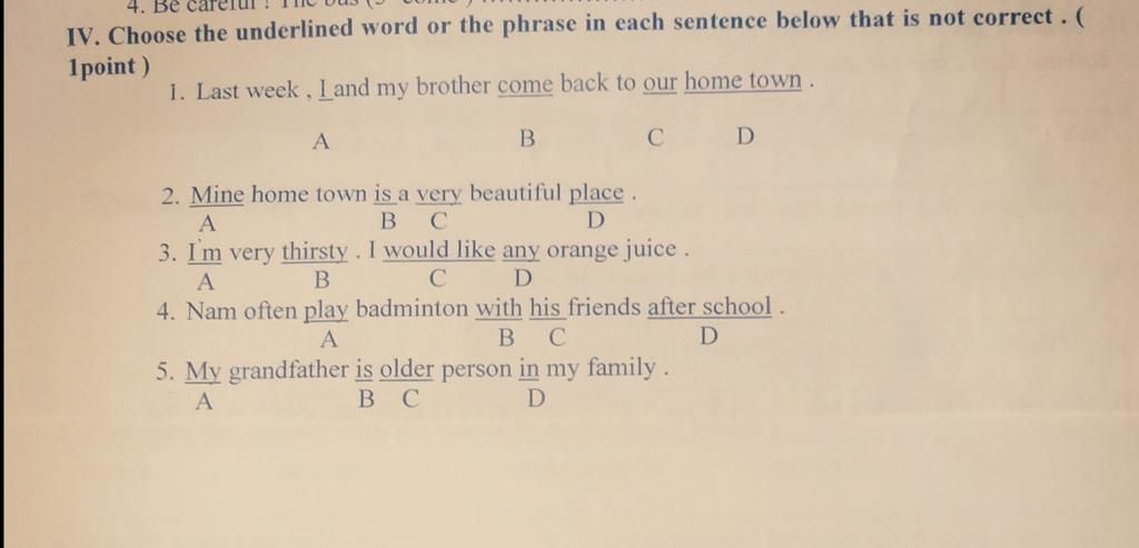 - Ở đây trước từ cần sửa có danh từ ( hometown ) ` -> ` dùng tính từ sở hữu