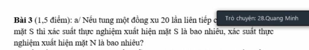 Bài 3 (1,5 điểm): a/ Nếu tung một đồng xu 20 lần liên tiếp o