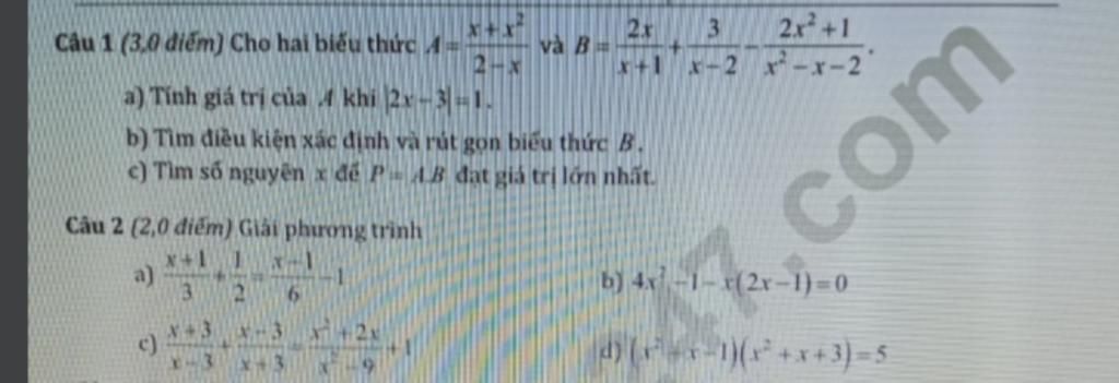 c) Tim số nguyên x để P AB dat giá trị lớn nhất.