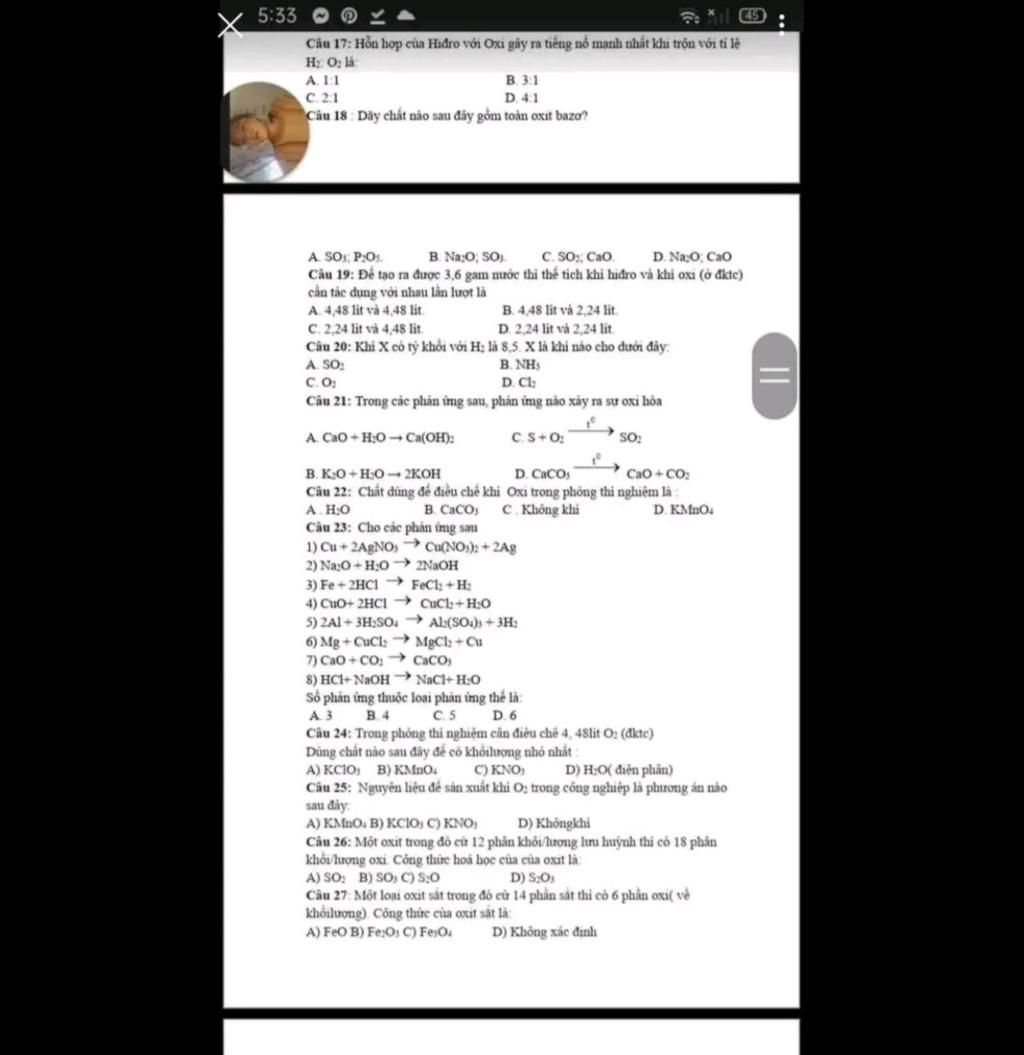 Câu 17: Hồn hợp của Hidro với Oxi gây ra tiếng nổ manh nhất khi trồn với ti lệ
