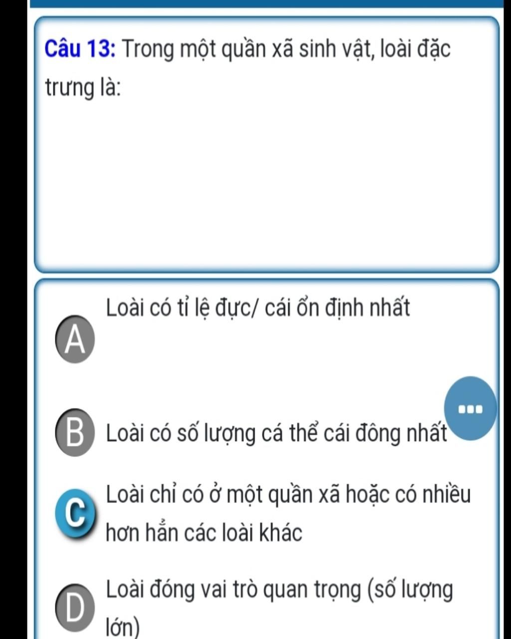 Loài đặc trưng trong quần xã là loài chỉ có ở một quần xã hoặc có nhiều hơn hẳn các loài khác.
