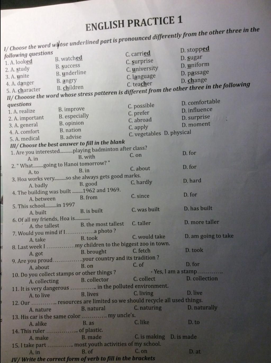 III. 1.a 2.c 3.d 4.a 5.c 6.a 7.a 8.d 9.c 10.b 11,a 12.b 13.b 14.d 15.a