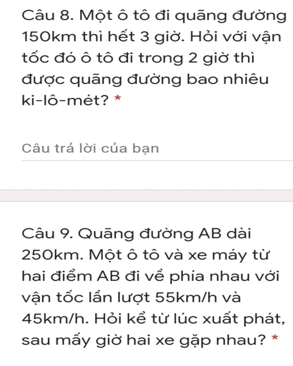 250:(55+45)=2,5(km)=2 giờ 30 phút