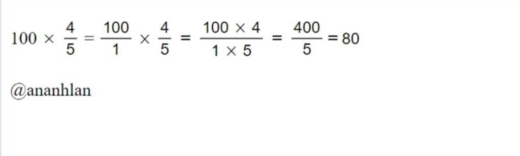 `100xx4/5=100/1xx4/5=(100xx4)/(1xx5)=400/5=80`