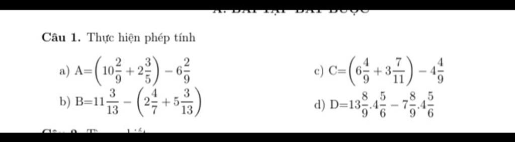 `d) D = 13 8/9 . 4 5/6 - 7 8/9 . 4 5/6`