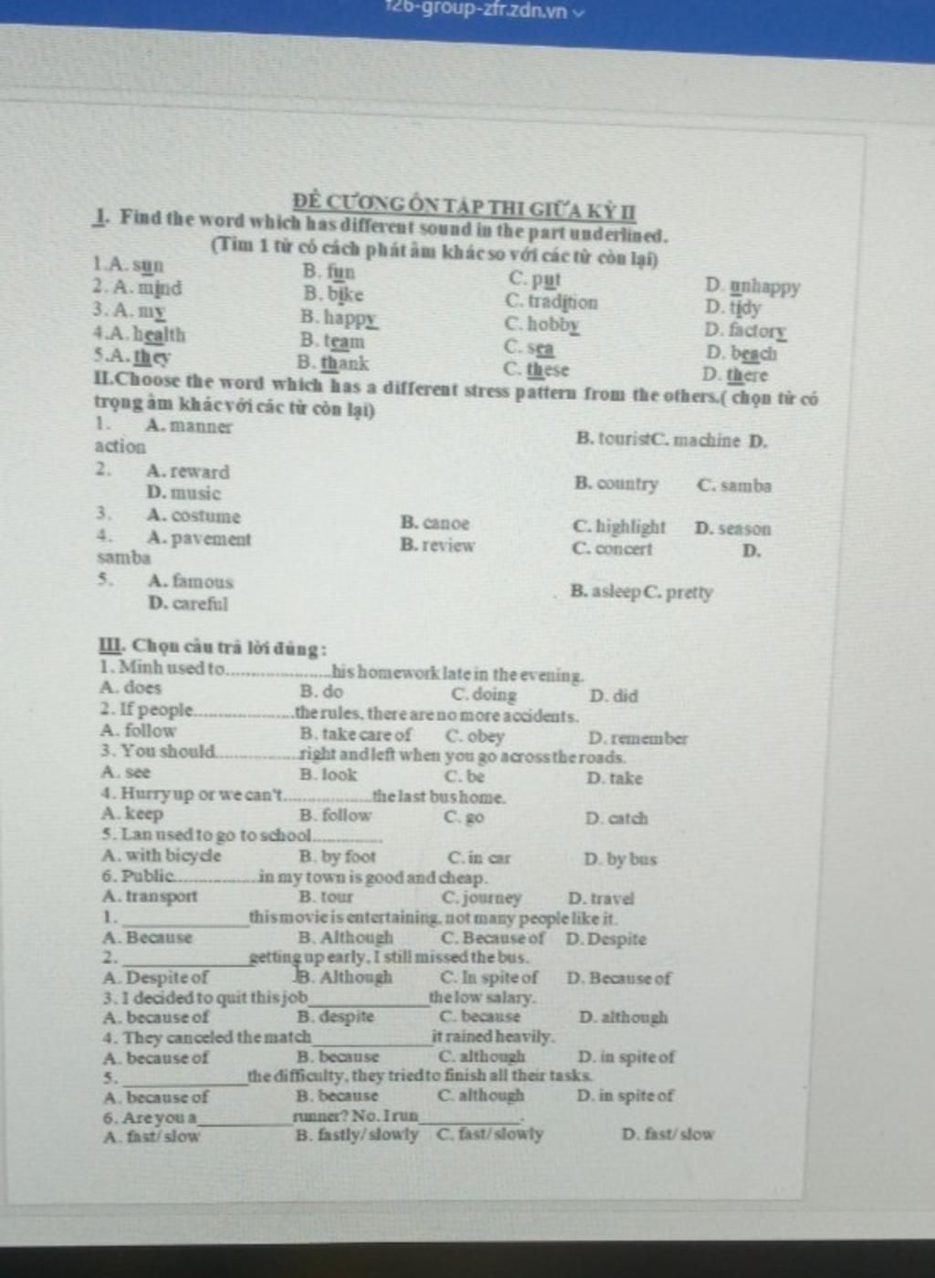 Vui lòng chỉ chọn một câu hỏi
