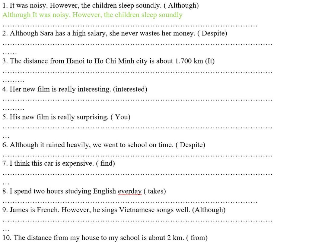 `\rightarrow` Although + C1 + C2 : Mặc dù