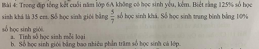 Bài 4: Trong dịp tổng kết cuối năm lớp 6A không có học sinh yếu, kếm. Biết rằng 125% số học