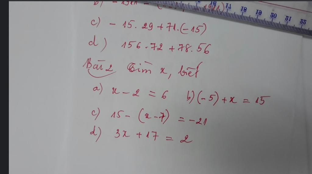 a)x-2=6 b)-5+x=15 c)15-(x-7)=-21 d)3x+17=2