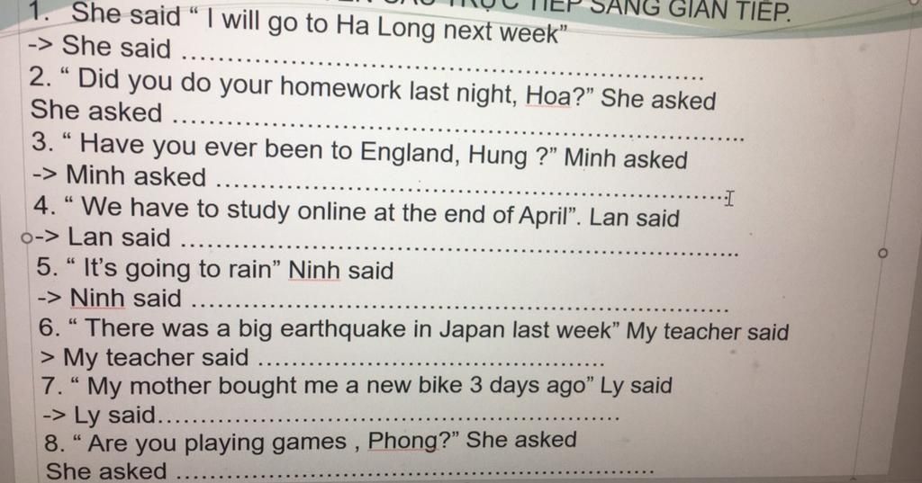 1.She said she would go to Ha Long the next week
