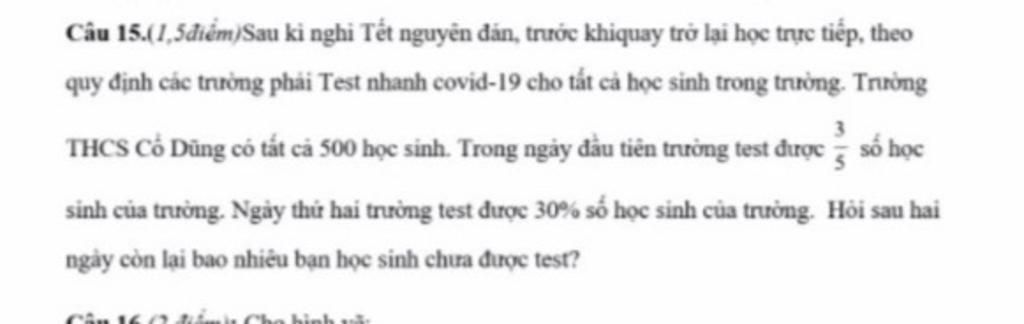 Sau ngày thứ 2 còn lại số học sinh chưa test là :