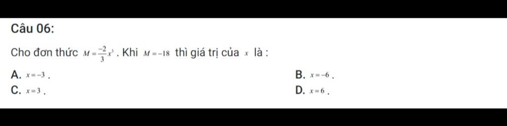 Vậy giá trị x của đơn thức M là 3 đạt được khi M = -18