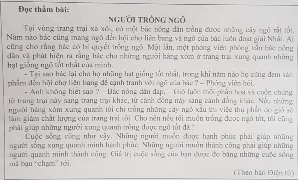 B. Một phóng viên phát hiện ra rằng bác cho những người hàng xóm ờ trang trại xung quanh những hạt giống ngô tốt nhất của mình.