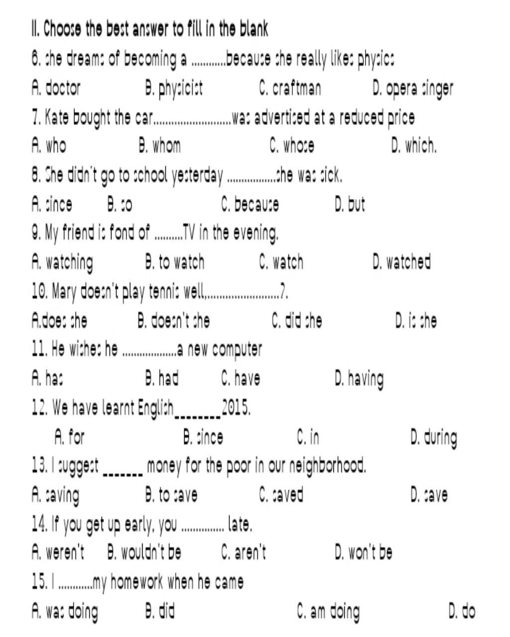 8. She didn't go to :chool ye:terday.the wa: ick.