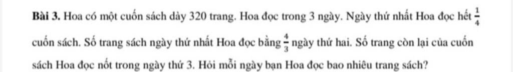 Ngày thứ nhất Hoa đọc số trang là `:`