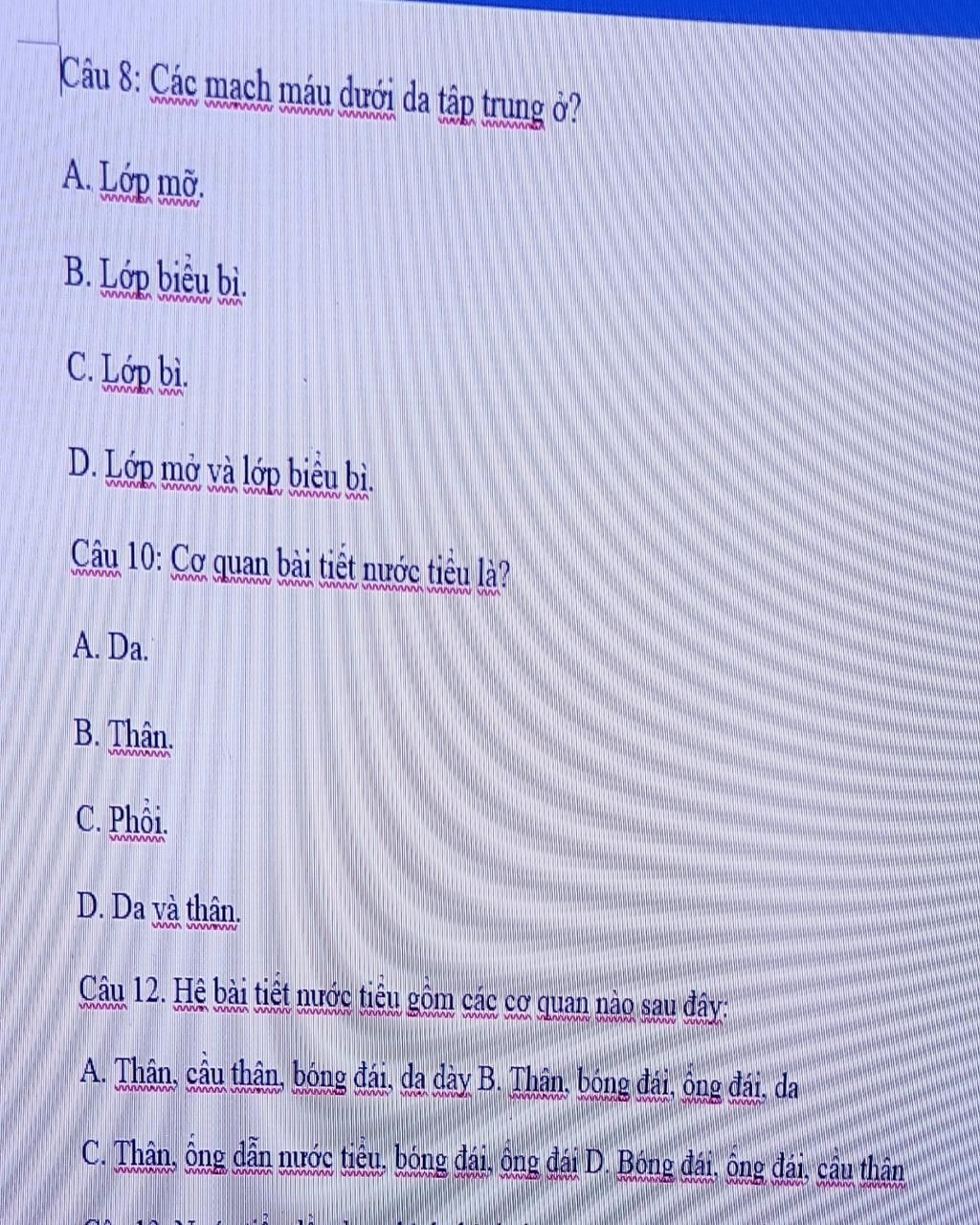 câu 8 : lớp bì