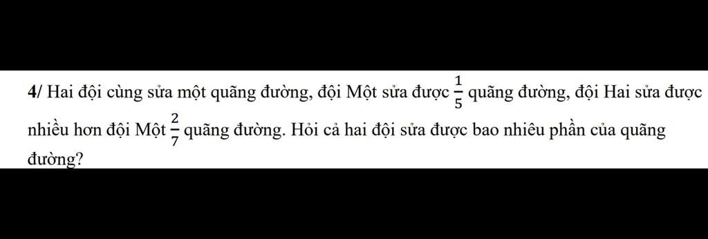 Cả 2 đội sửa được sô phần của quãng đường là :