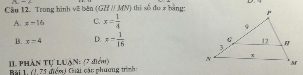 `=> text(chọn câu A. x=16 nha)`