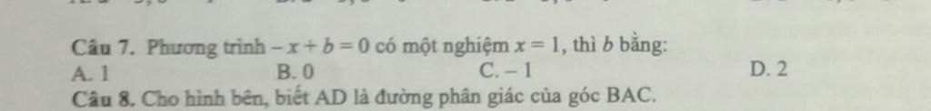 Thay `x = 1` vào phương trình `- x + b = 0` ta được :