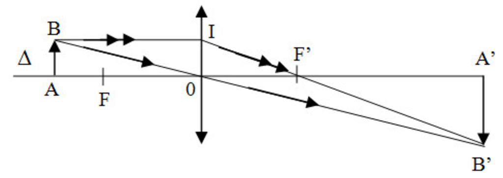 \dfrac{{AB}}{{A'B'}} = \dfrac{{OI}}{{A'B'}} = \dfrac{{OF'}}{{OA' - OF'}} = \dfrac{{10}}{{OA' - 10}}\\