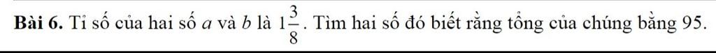 `=>` Tỉ số giữa `a` và `95` là `11/(8+11) = 11/19`