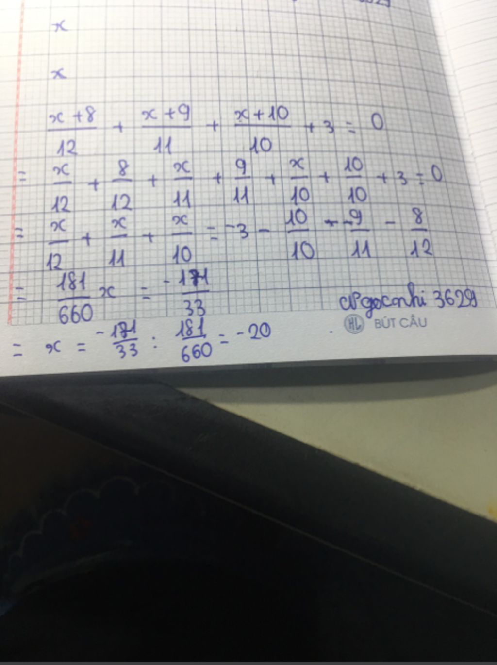 Vậy `x = -20`