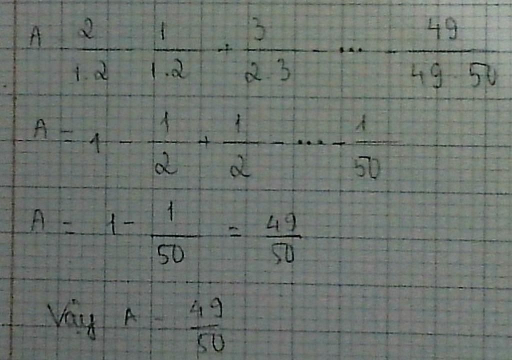Vậy giá trị của biểu thức `A = 49/50`