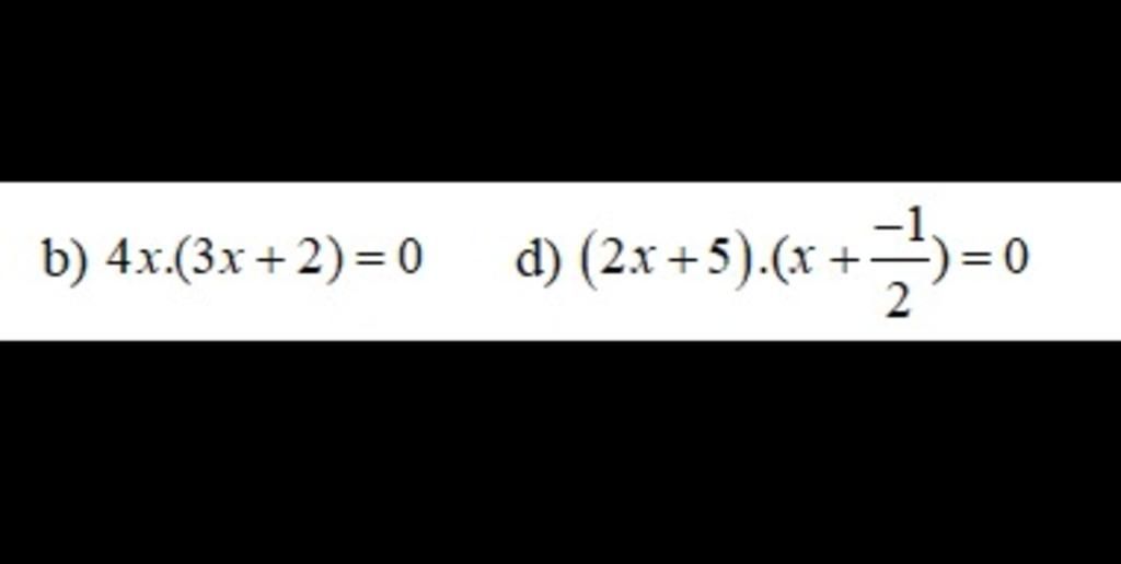 `d) (2x+5) . (x+(-1)/2) = 0 `