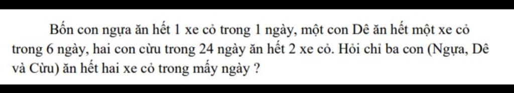 Vậy: 3 con ngựa, dê, cừu ăn hết 2 xe cỏ trong 4 ngày.