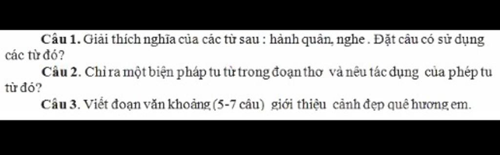 hành quân : là (đơn vị quân đội ) di chuyển từ nơi này đến nơi khác theo đội hình nhằm mục đích nhất định.