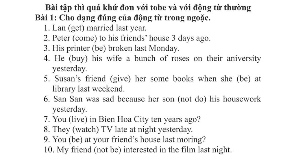 `-` Tobe : chia tobe thành was/were cho bị động hoặc diễn tả thứ gì đó như thế nào ở quá khứ.