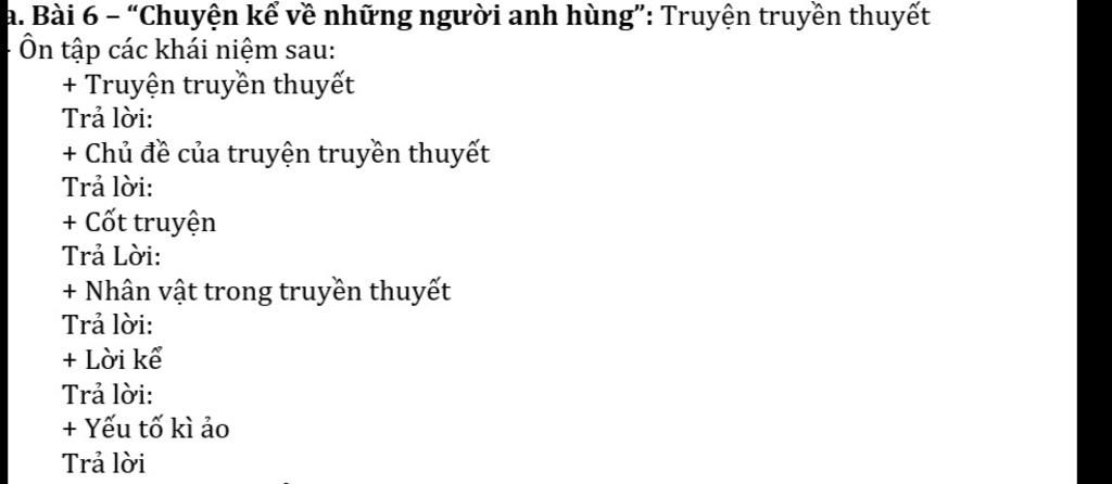 - Cốt truyện của truyện truyền thuyết thường gồm ba phần gắn với cuộc đời của nhân vật chính : hoàn cảnh xuất hiện và thân thế, chiến công phi thường, kết cục.