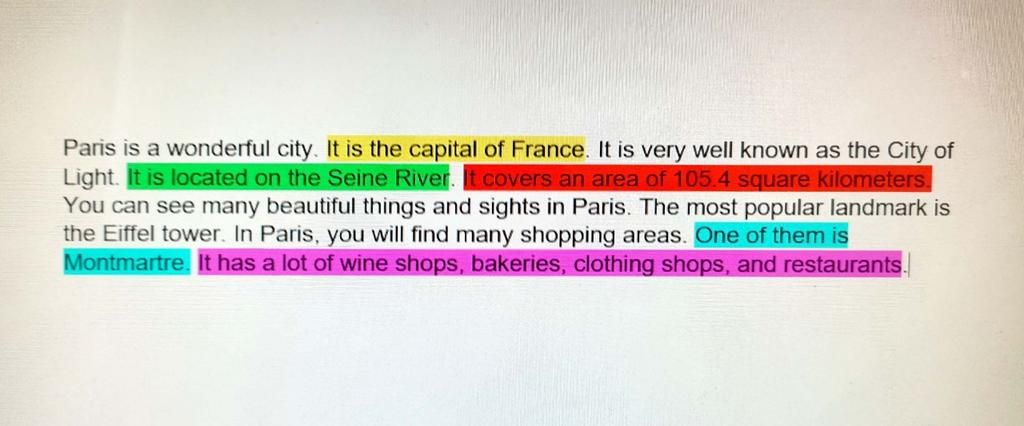Paris is a wonderful city. It is the capital of France. It is very well known as the City of Light. It is located on the Seine River. It covers an area of 105.4 square kilometers. You can see many beautiful things and sights in Paris. The most popular landmark is the Eiffel tower. In Paris, you will find many shopping areas. One of them is Montmartre. It has a lot of wine shops, bakeries, clothing shops, and restaurants.