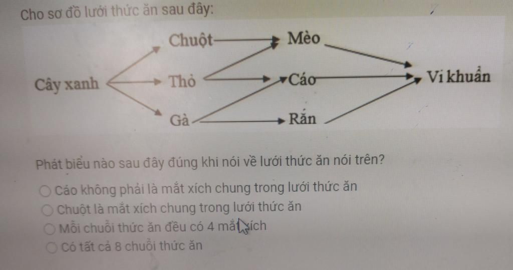 4. Cây xanh -> gà -> cáo -> Vi khuẩn