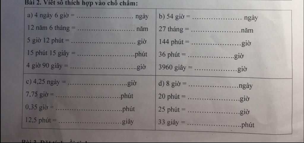 c, 4,25 ngày = 17 giờ d,8 giờ = 1/3 ngày