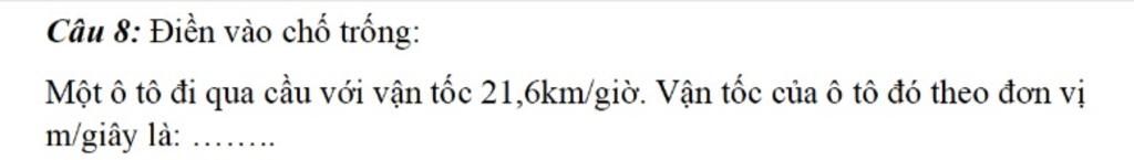 `\text{21600 : 60 : 60=6(m/giây)}`