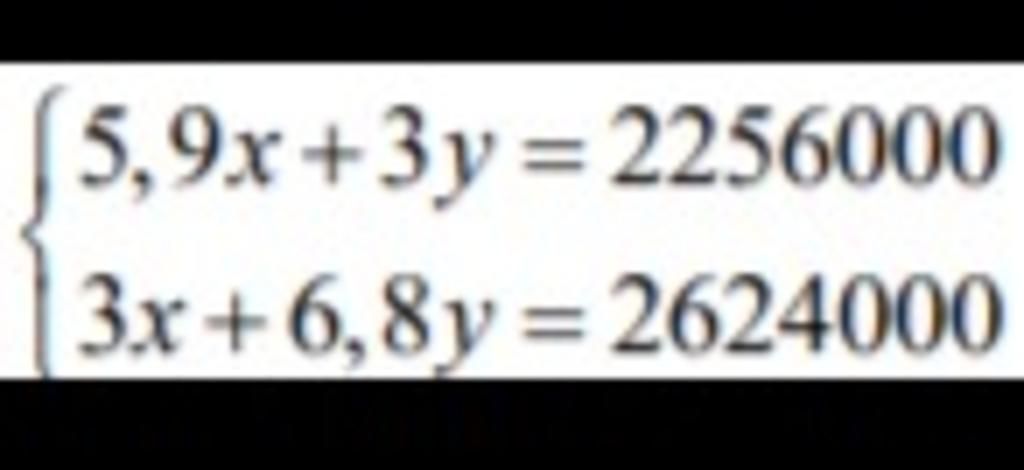 `{(5.9x+3y=2256000),(3x+6,8y=2624000):}`