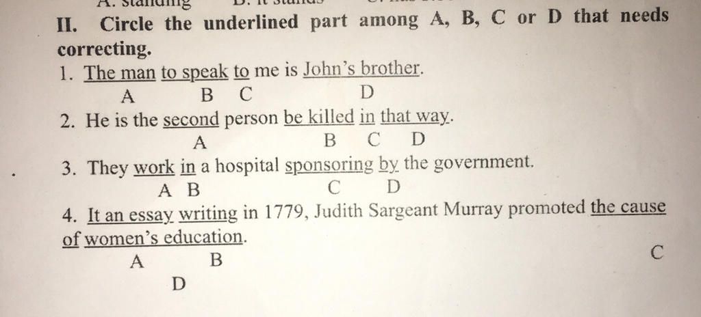 1. B -> speaking